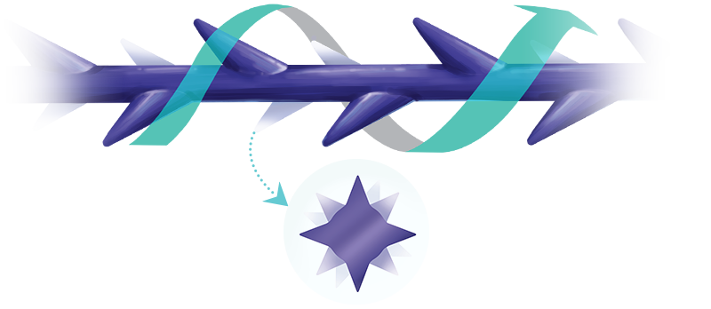 민트실은 실 표면에 360도 방향으로 돌기가 형성된 구조를 가지고 있습니다. 일반 실이 한 방향으로만 조직을 잡는 구조라면, 민트실은 여러 방향에서 조직을 지지하도록 설계되어 보다 안정적인 고정력을 제공합니다.